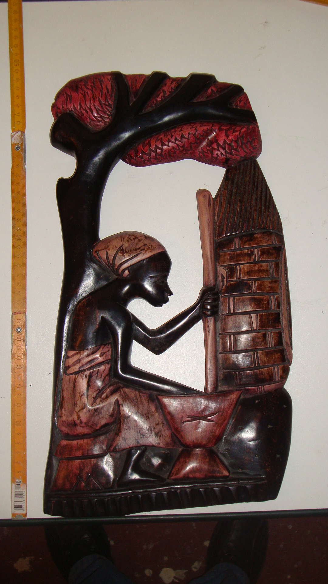 WBI 001 47X23 cm, Holz, bemahlt. Frau bereitet Fufu, ghanaische Nationalspeise. 49,00€ (incl 19% MWSt, ohne Versand)