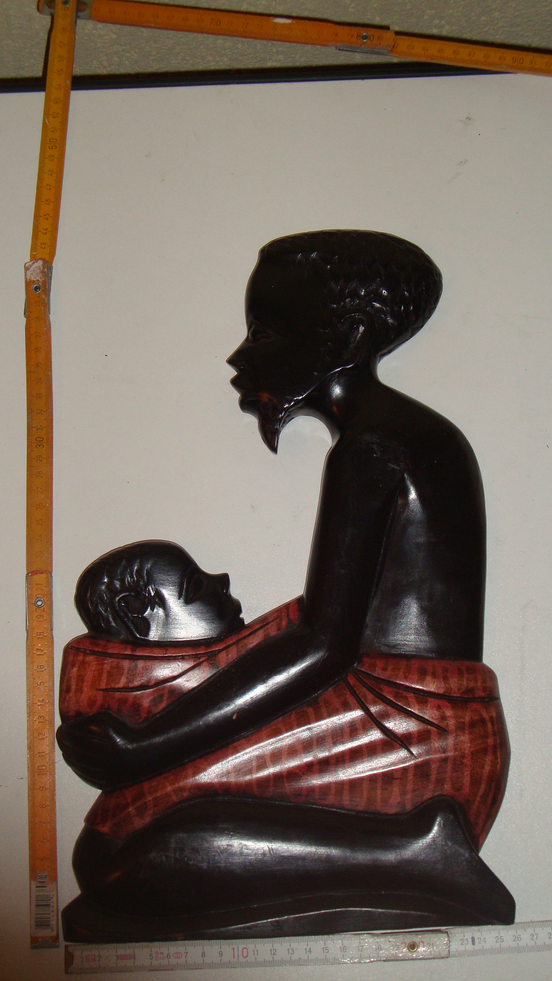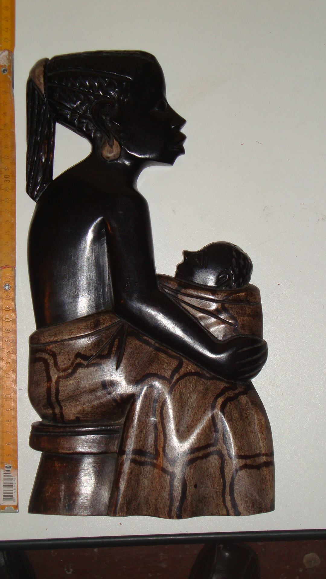 WBI 013 47X23cm, Holz, bemahlt. Mama mit Baby auf dem Rücken, Blick links. 49,00€ (incl 19% MWSt, ohne Versand)