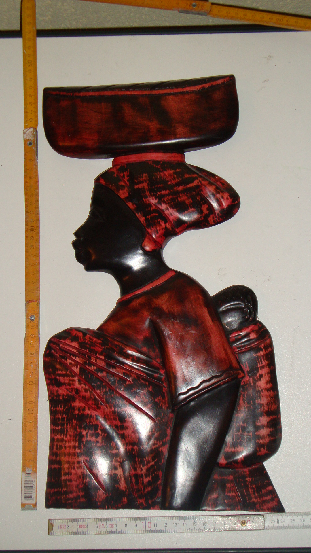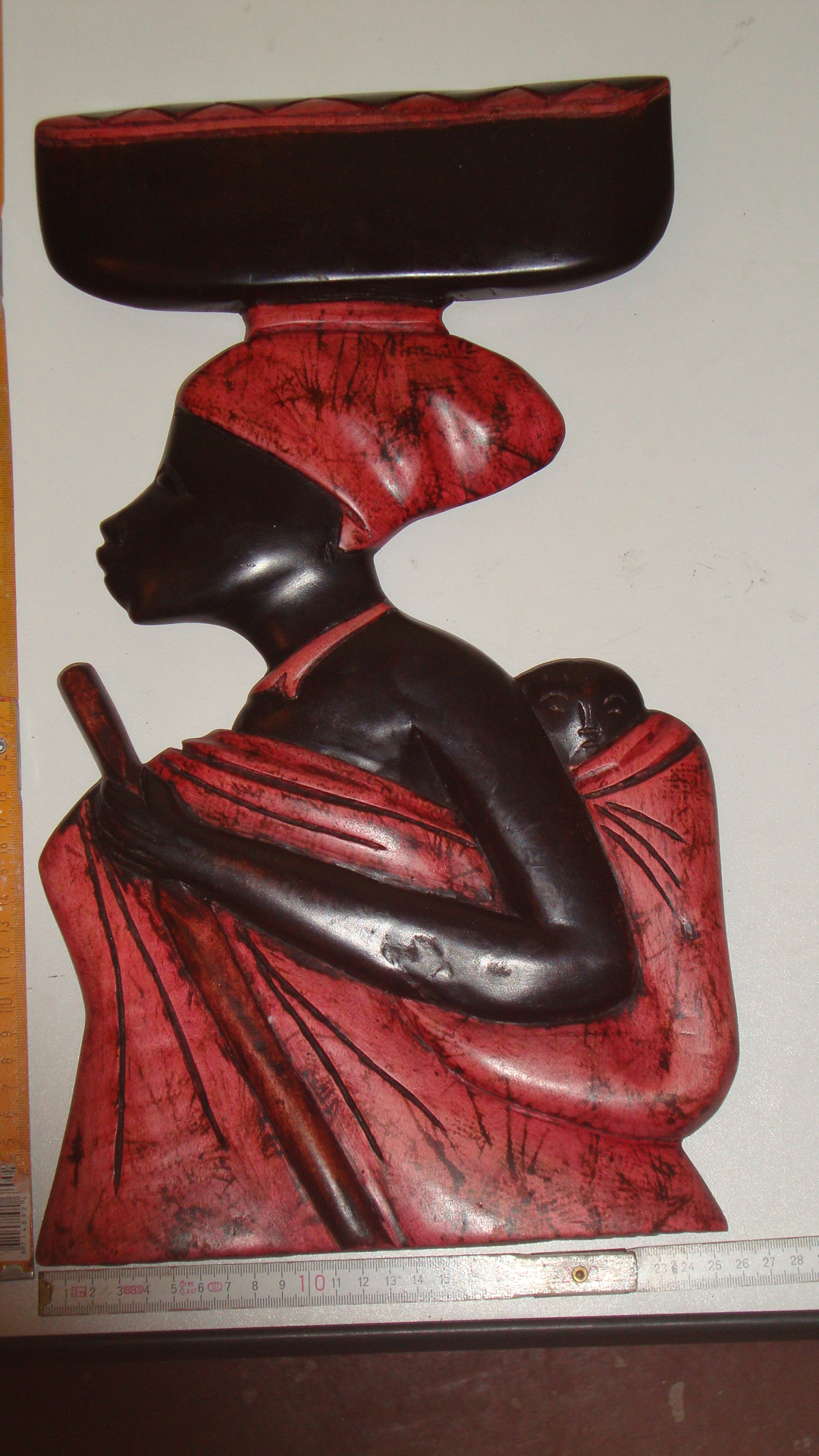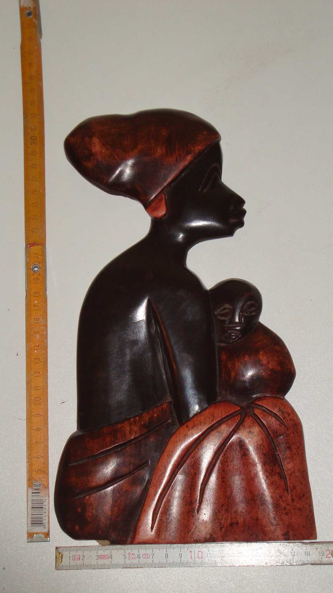 WBI 006 47X26cm, Holz, bemahlt. Mama Afrika mit Baby auf dem Rücken, Blick rechts. 49,00€ (incl 19% MWSt, ohne Versand)