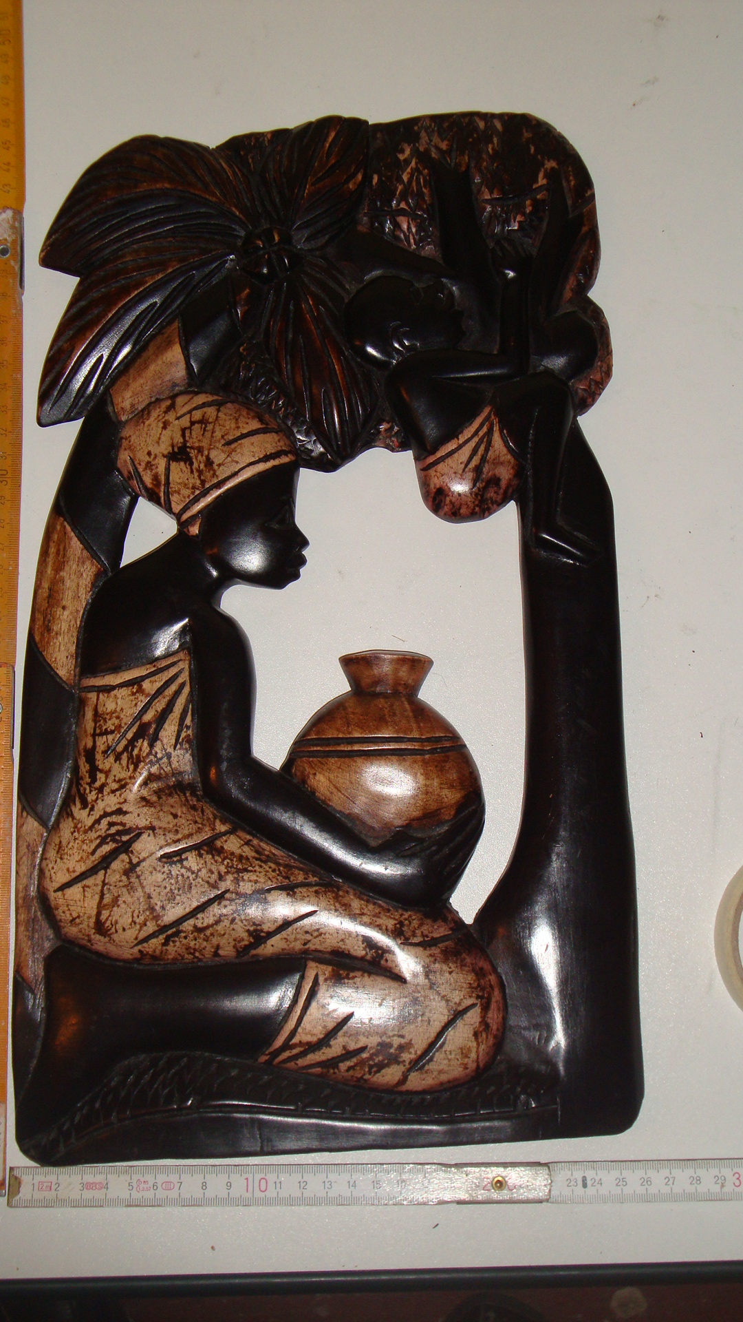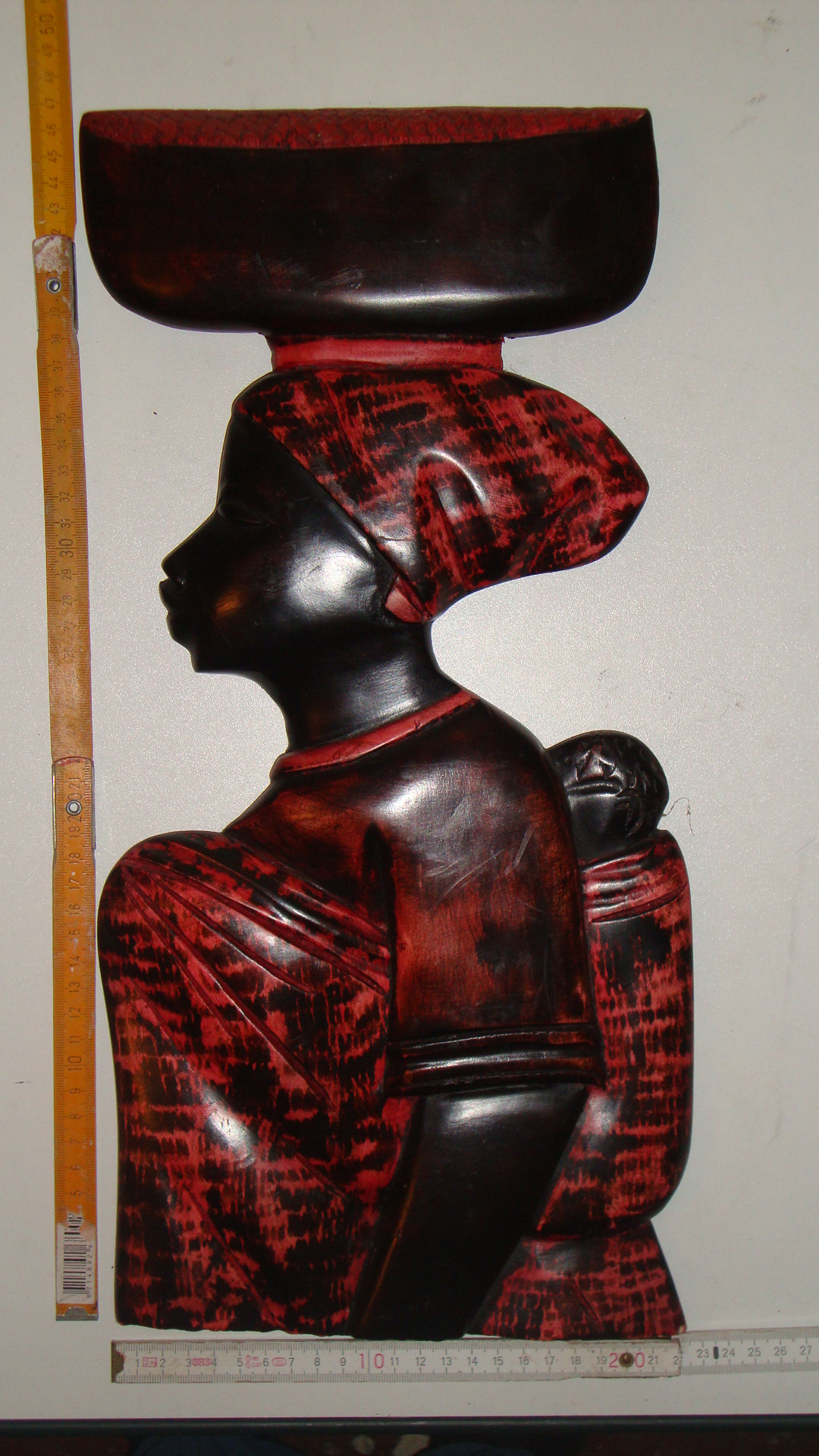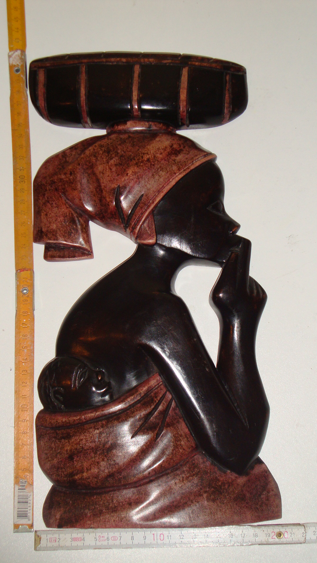 WBI 006 47X26cm, Holz, bemahlt. Mama Afrika mit Baby auf dem Rücken, Blick rechts. 49,00€ (incl 19% MWSt, ohne Versand)