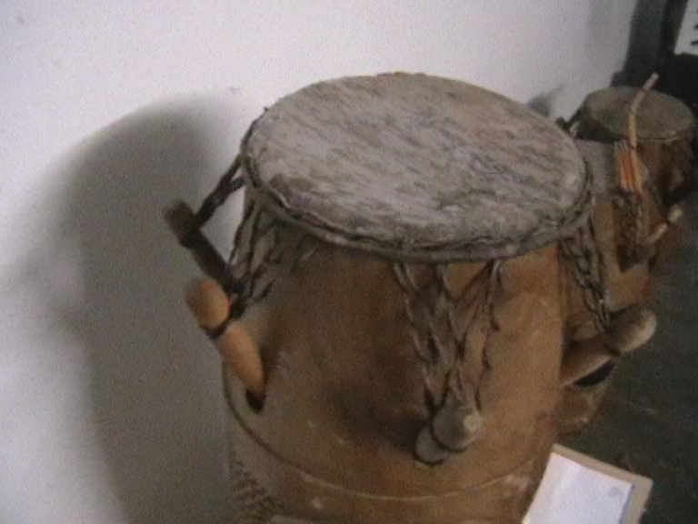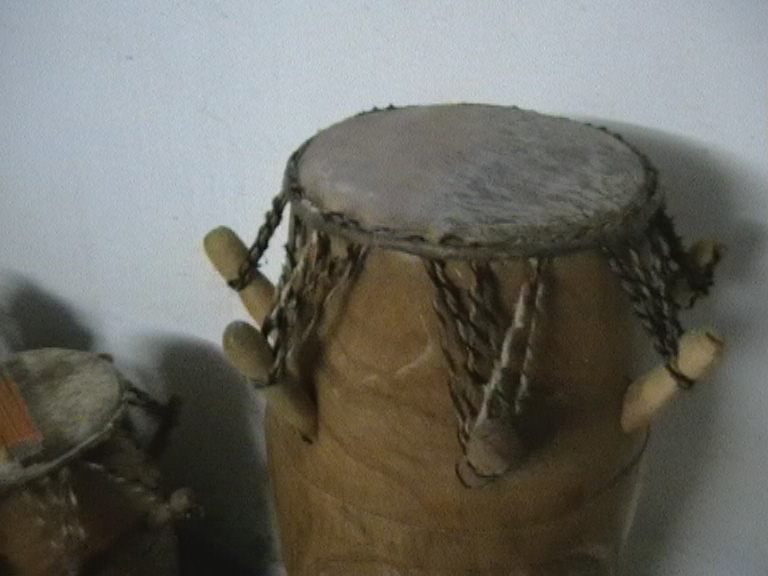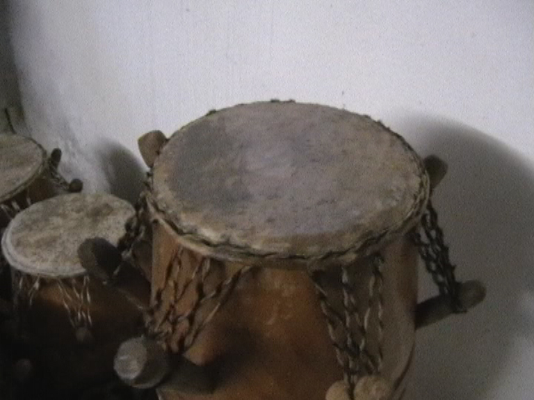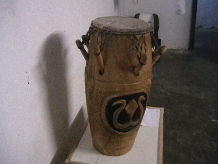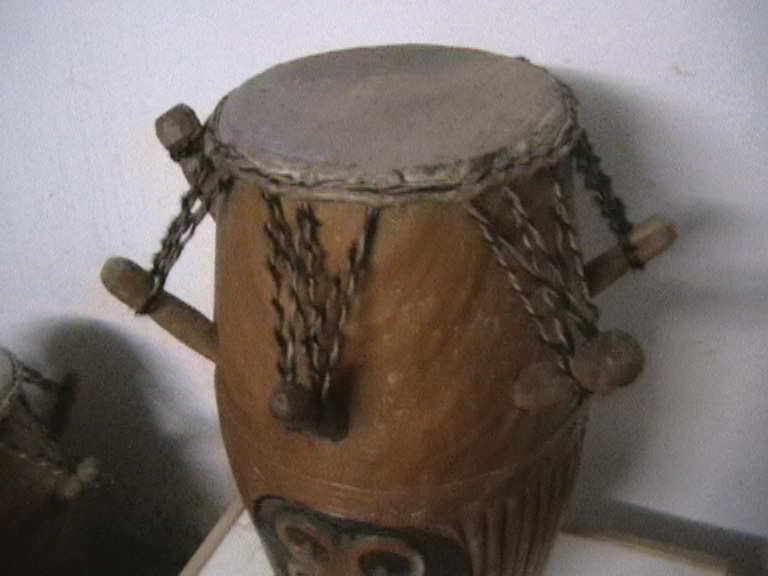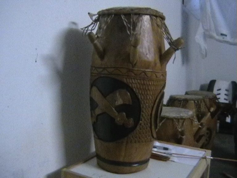 Die Kpanlogos werden in Kumasi, der Hauptstadt der Ashanti-Region aus dem Tweneboa-Holz gefertigt. Sie ist quasi der Urvater der Kongas. Sieben Pflöcke geben dem Kalbsfell die nötige Spannung. Der Sound ist weich und erdig. Die Kpanlogo ist sehr vielseitig, da man auf ihr auch cubanische und brasilianische Rhythmen und sie auch mit Sticks spielen kann, was man bei einer Djembe nicht tuen sollte. Daher setze ich auch nur Kpanlogos im Untericht ein. Alle Trommeln sind mit Sankofa-Symbols verziert.